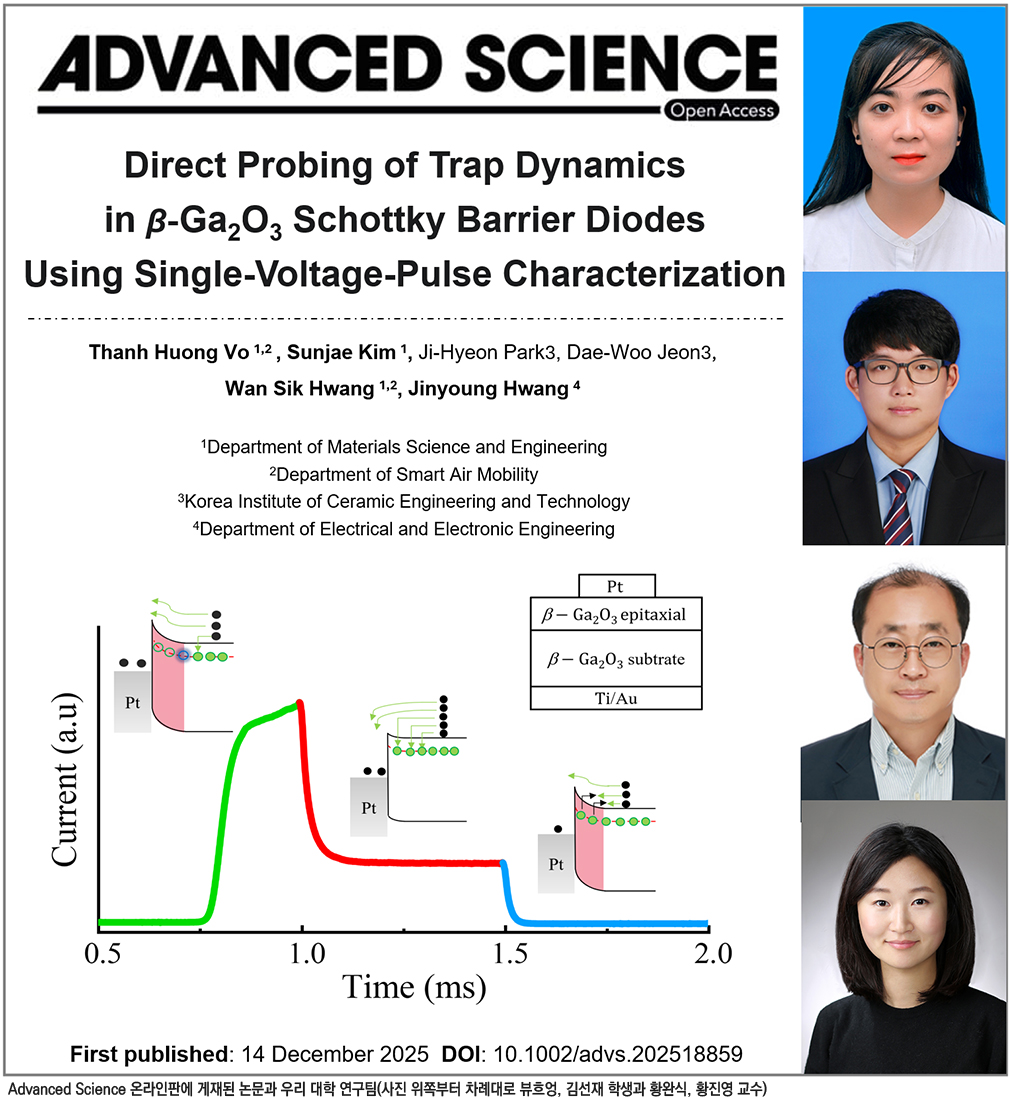 해당 논문은 ‘Direct Probing of Trap Dynamics in β-Ga₂O₃ Schottky Barrier Diodes Using Single-Voltage-Pulse Characterization’이라는 제목으로, 2025년 12월 14일 온라인판에 공개됐다. (논문 링크: https://doi.org/10.1002/advs.202518859)